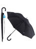 Классический черный зонт имеет прочную закругленную ручку, за которую удобно держаться, за нее же можно подвесить зонт в перевернутом положении. Открывается нажатием на кнопку, закрывается вручную. Зонтик убирается в чехол. Изготовлен из полиэстера и металла, ручка из пластмассы. Диаметр купола 110 см.