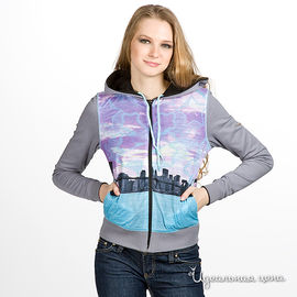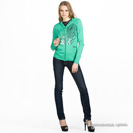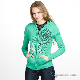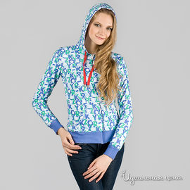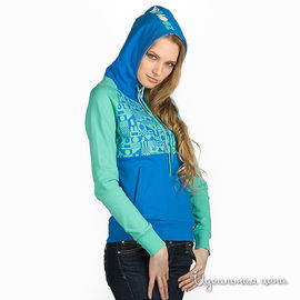 Женская толстовка, ярко-синяя с зелеными рукавами